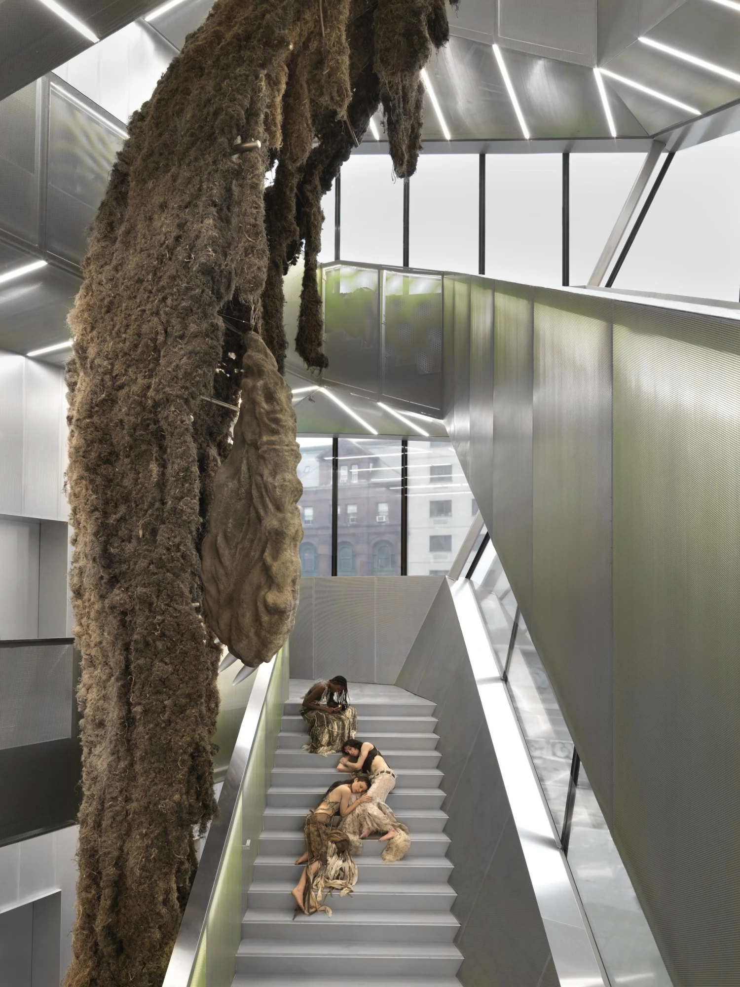 Instalace, která svým rozměrem šplhá až do čtvrtého poschodí muzea, je vůbec první umělecký projekt Kláry Hosnedlové ve Spojených státech. A vzhledem k tempu, které její kariéra během posledních let nabrala, lze předpokládat, že nejde o poslední.