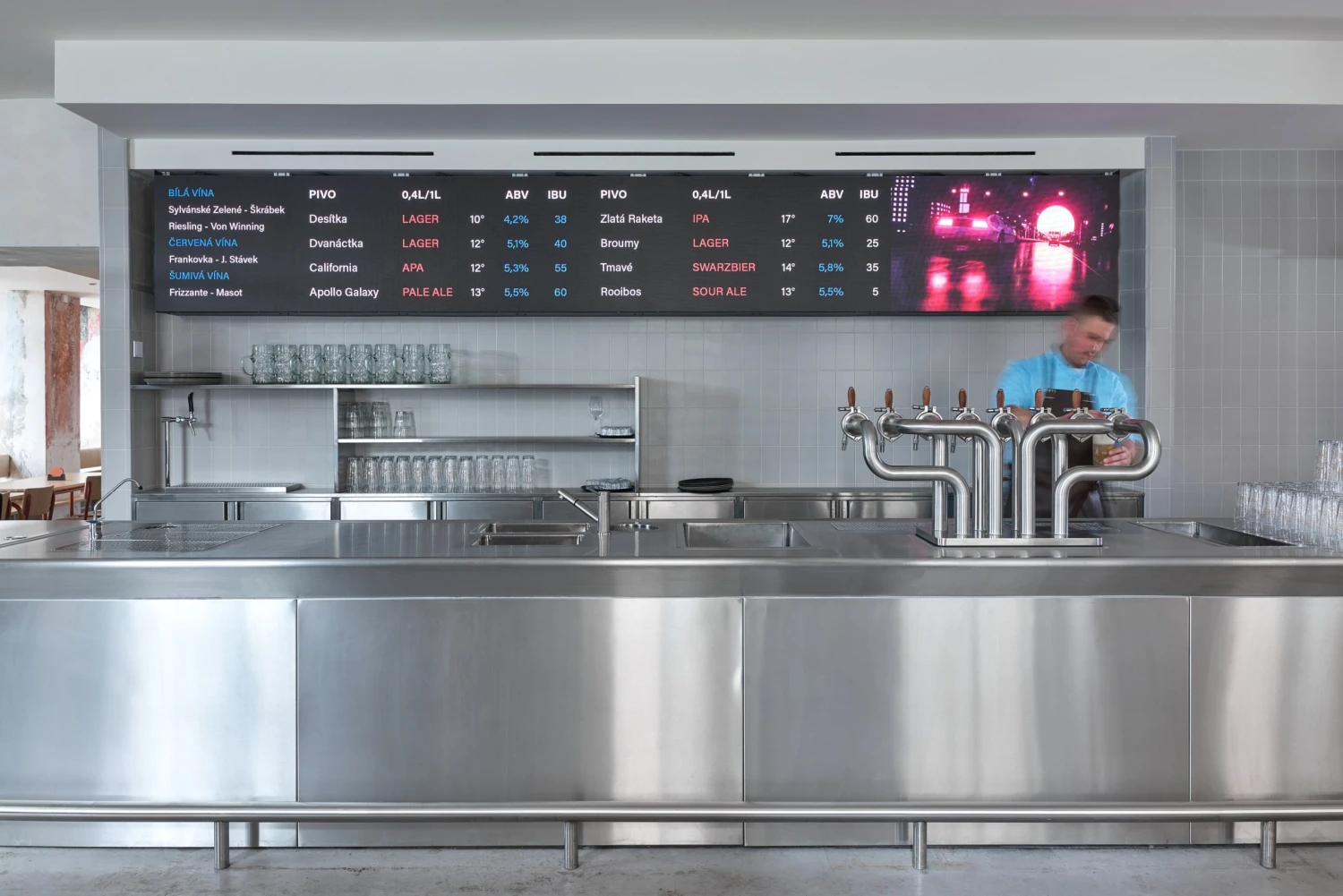 Centrum dění ale v restauraci, odkud se dá sledovat pulzující život na náměstí Jiřího z Poděbrad a kde s příchodem jara přibude i venkovní restaurační zahrádka, zůstává u výčepu. Na něj totiž navazuje stůl štamgastů, který nechal Adam Matuška vyrobit na zakázku.