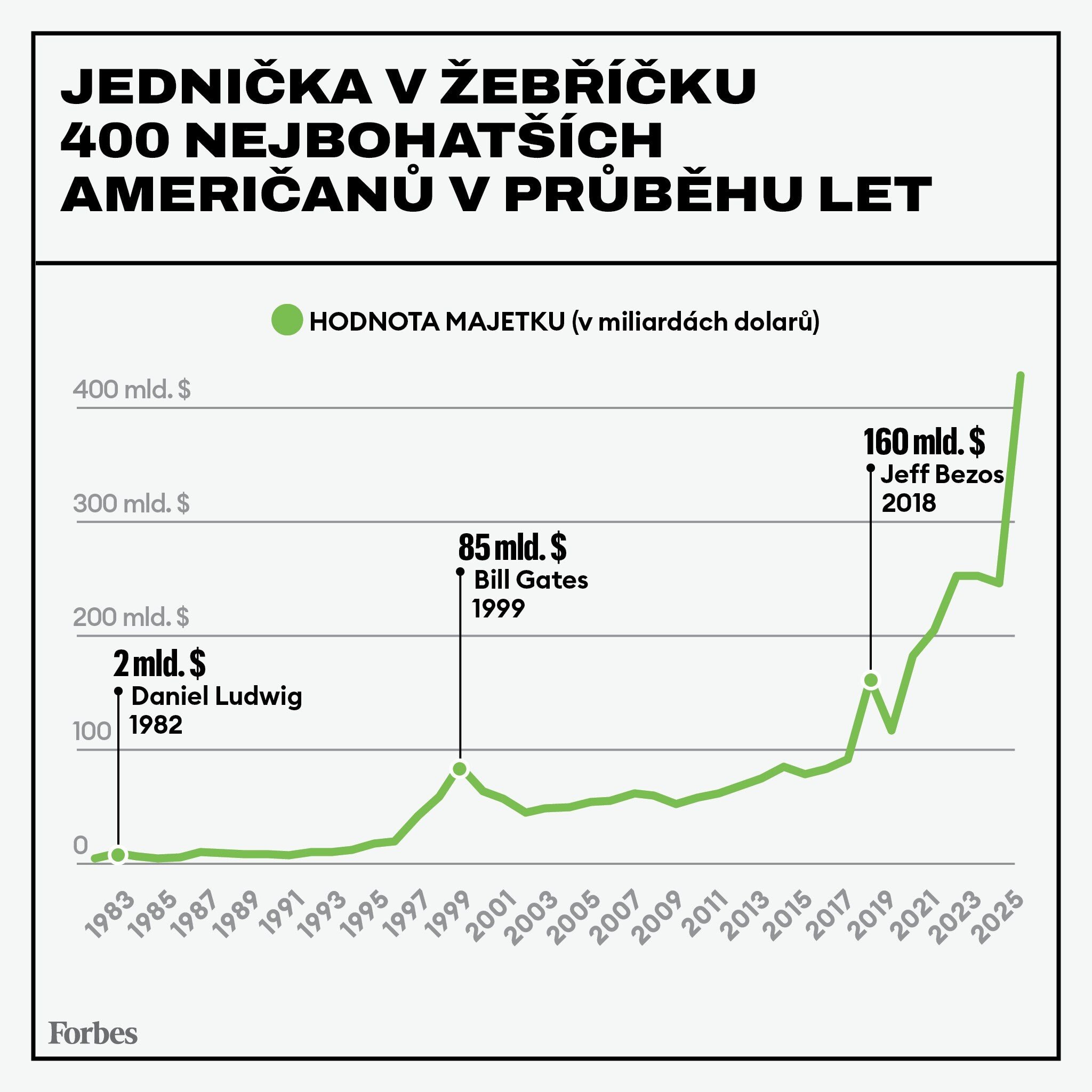 Rekord padl i na čele seznamu. Elon Musk je první osobou v historii žebříčku The Forbes 400, která překonala hranici čtyř set miliard dolarů.