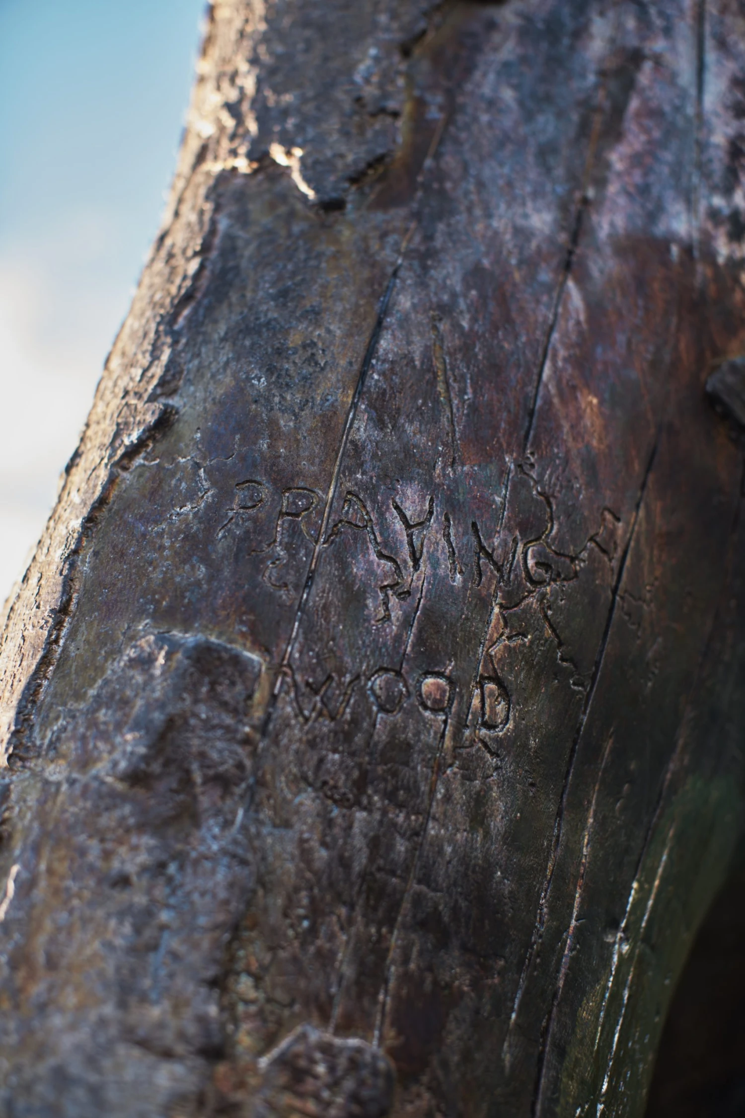 To však neznamená absenci silné výpovědi. Socha Praying Wood, s jejímž motivem pracuje autor už od roku 2013, v sobě nese zřetelnou narážku na vztah naší civilizace k přírodě či náboženství, a otevírá tak environmentální, sociální i politické otázky.