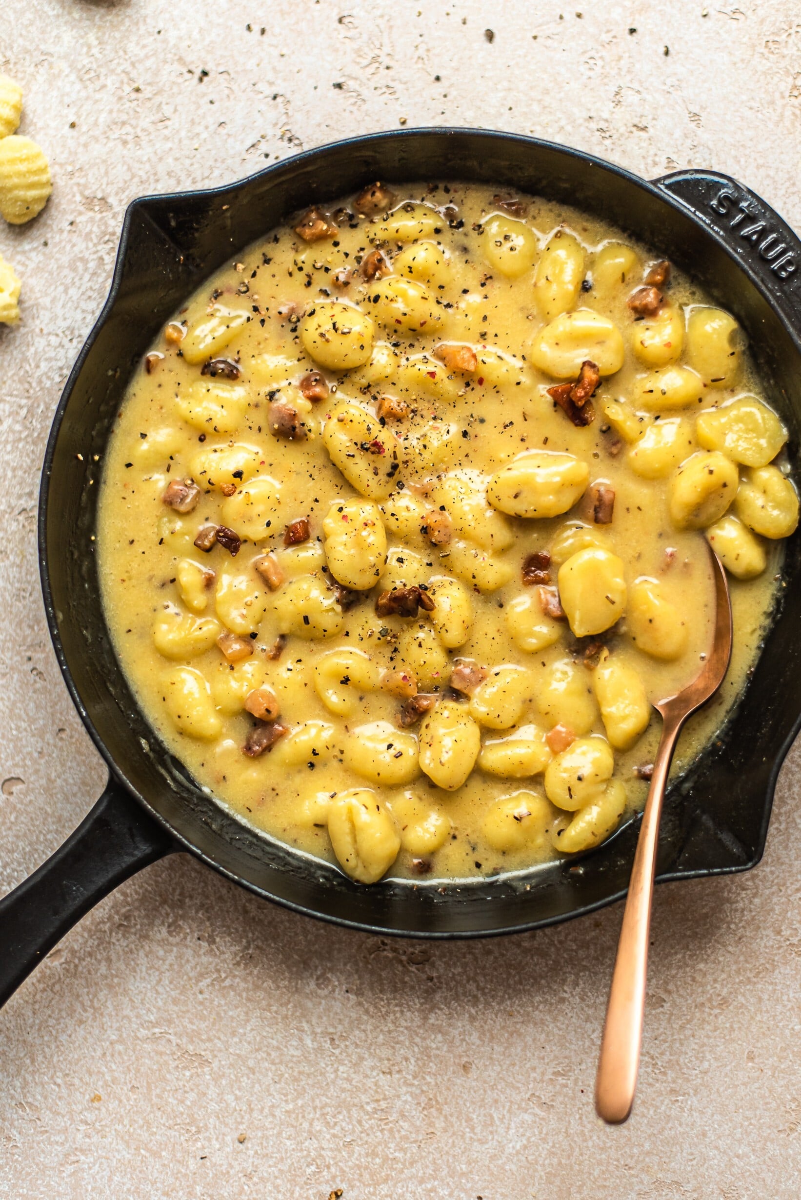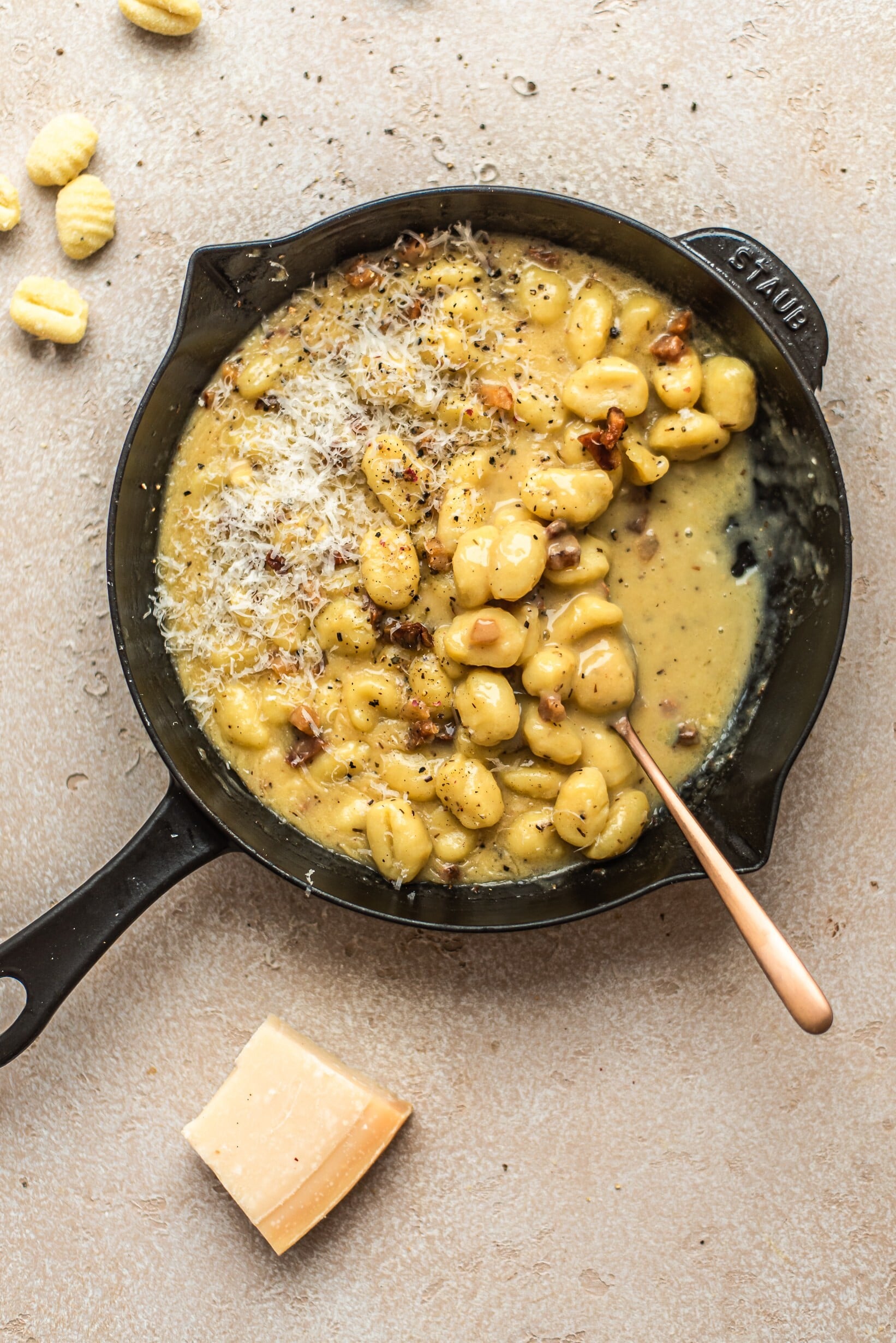 Carbonara vznikla v italském Laziu jako jednoduché jídlo uhlířů, gnocchi se jedly po celé Itálii. A dohromady tvoří nečekaně komfortní kombinaci, kterou stojí za to vyzkoušet.