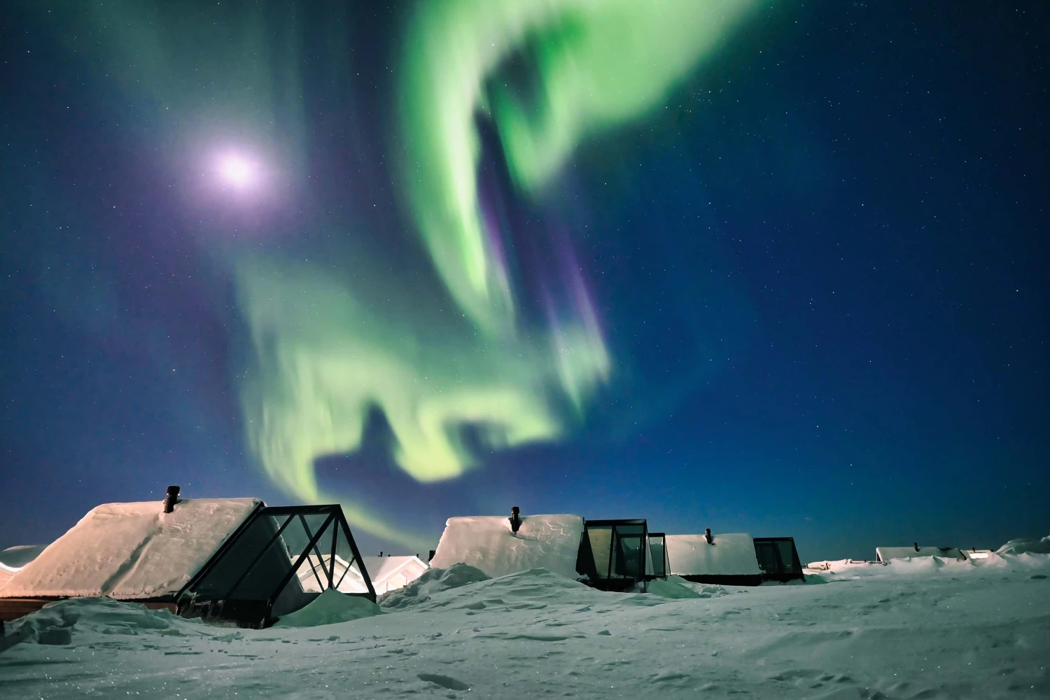 Snowhotel Kirkenes nabízí jak chatky s velkými skly, tak – jak název napovídá – i ubytování ve sněhu. To je dostupné po celý rok, padne na něj třicet tun ledu a stavějí ho tak, že velký balon pokryjí sněhem a po jeho zmrznutí balon odstraní.