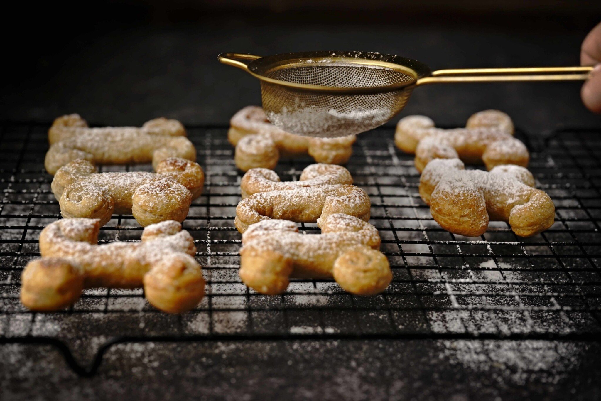 Recept má mnoho variant jak z kynutého, tak křehkého nekynutého těsta. My jsme dnes zvolili smaženou, nikoli pečenou přípravu kostí svatých, které voní máslem a kořením.