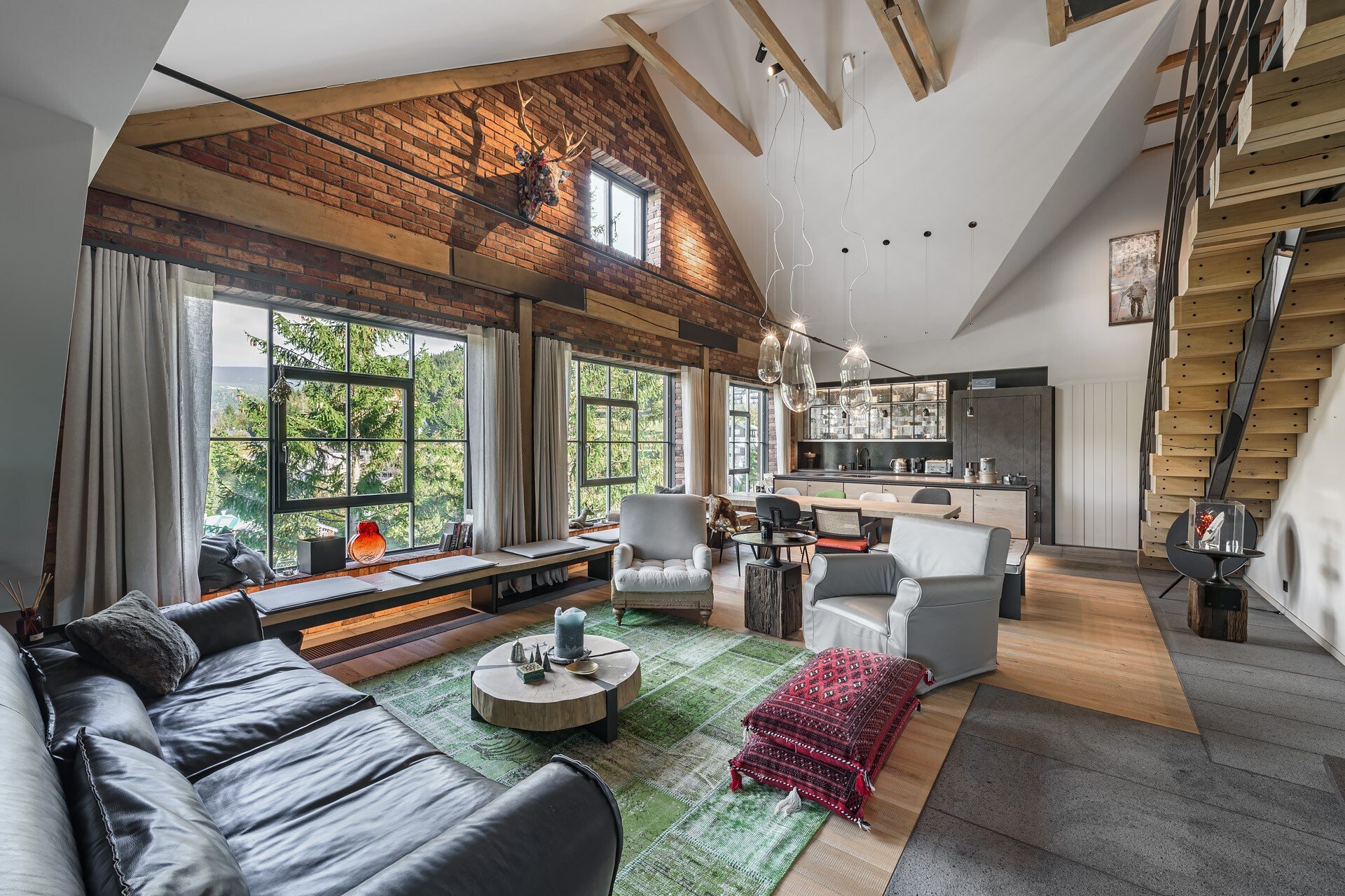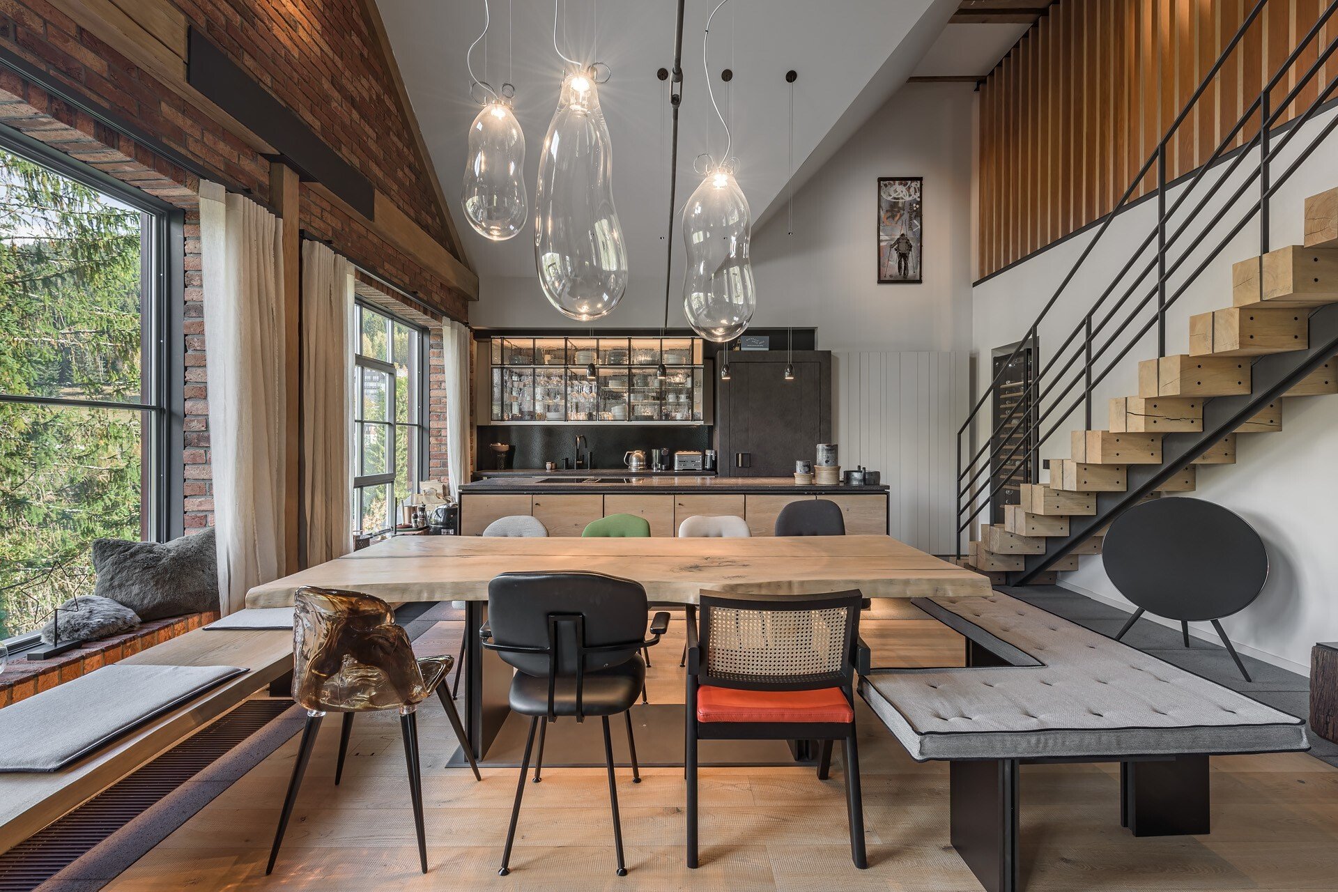 Luxusní mezonety za desítky milionů se neprodávají jen v Praze, ale třeba také ve Špindlerově mlýně. Tenhle navíc rukopis designérky Barbory Škorpilové, která se podílela na jeho rekonstrukci před necelými pěti lety. Přímo z výtahu vejdete do vstupní haly bytu a pak do hlavní dominanty spodního patra, kterou je otevřený prostor obývacího pokoje se stropem přes obě patra bytu.