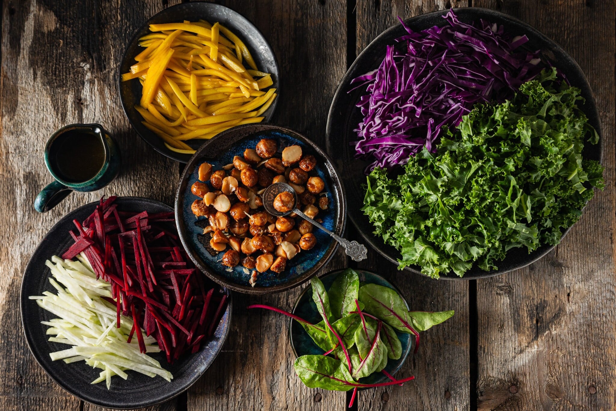 Zimní kadeřávkový salát s řepou, mangem a karamelizovanými ořechy