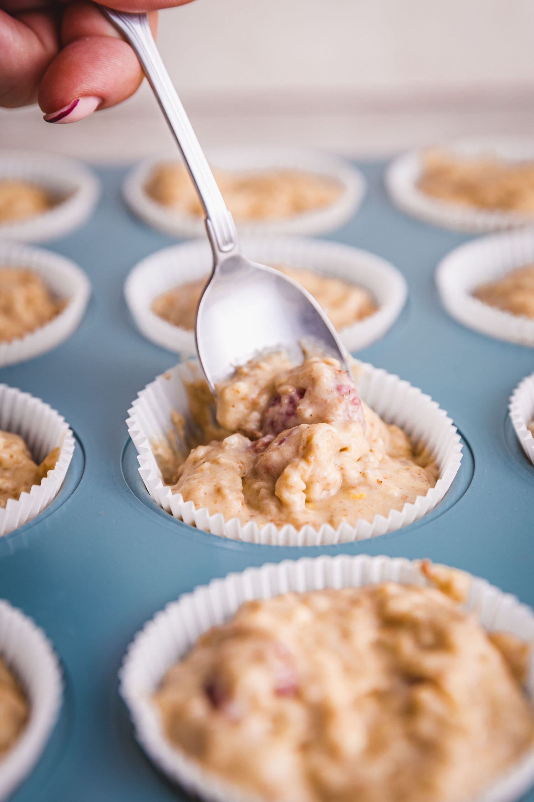 - Formu na muffiny vystelte papírovými košíčky a troubu předehřejte na 200 °C.
