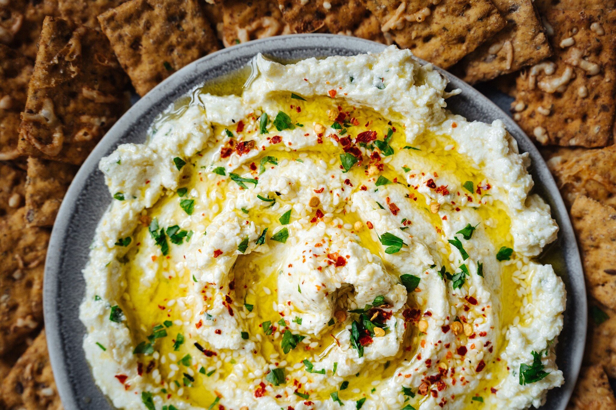 Jemná česneková pomazánka z čerstvého sýru a sezamu je hotová během chvilky a hodí se jak k pečivu, krekrům a čerstvé zelenině, tak k pečenému masu, bramborám nebo jako omáčka na těstoviny. Naprosto famózní pak je v čerstvě upečené pitě s falafelem nebo zbytky pečeného kuřete a grilovanou zeleninou.