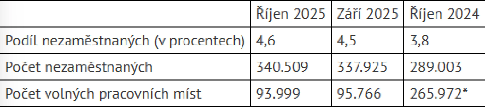 Nezaměstnanost v Česku ke konci října vzrostla o desetinu procenta ze zářijových 4,5 na 4,6 procenta. Lidí bez práce ve srovnání s koncem září přibylo o 2584 na více než 340 tisíc.