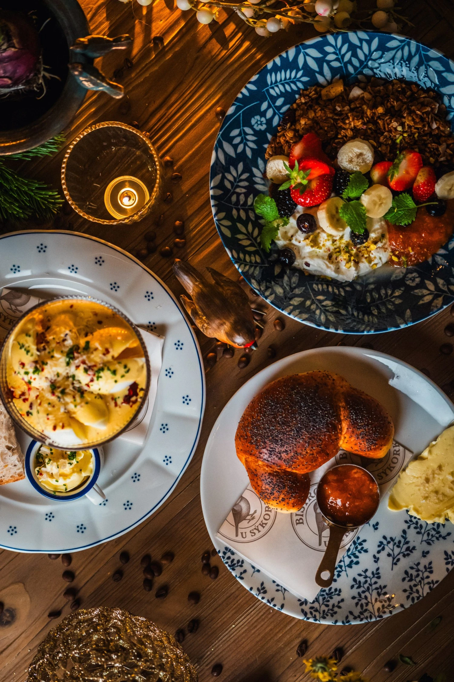 V nabídce tak najdete třeba turecká vejce, míchaná vajíčka s houbovým ragú, mnichovské klobásky v bylinkové várce, domácí granolu s farmářským jogurtem nebo snídani pro dva, která nabízí jakýsi průřez místním menu a nejsnáze díky ní ochutnáte nejvíce položek.
