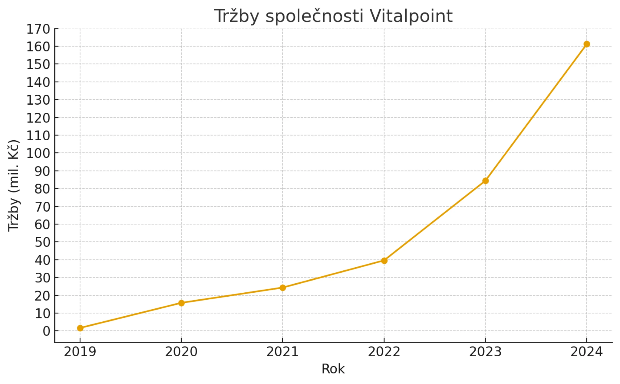 Když tuto pověstnou „hokejku“ protáhnete, dostanete se skutečně tam, kam tyhle meziroční skoky tržeb směřovaly. Za rok 2024 vykázal Vitalpoint tržby 161 milionů korun. Za šest let Chudobovi znásobili tržby přesně stokrát, letos na víc míří nad hranici 200 milionů.