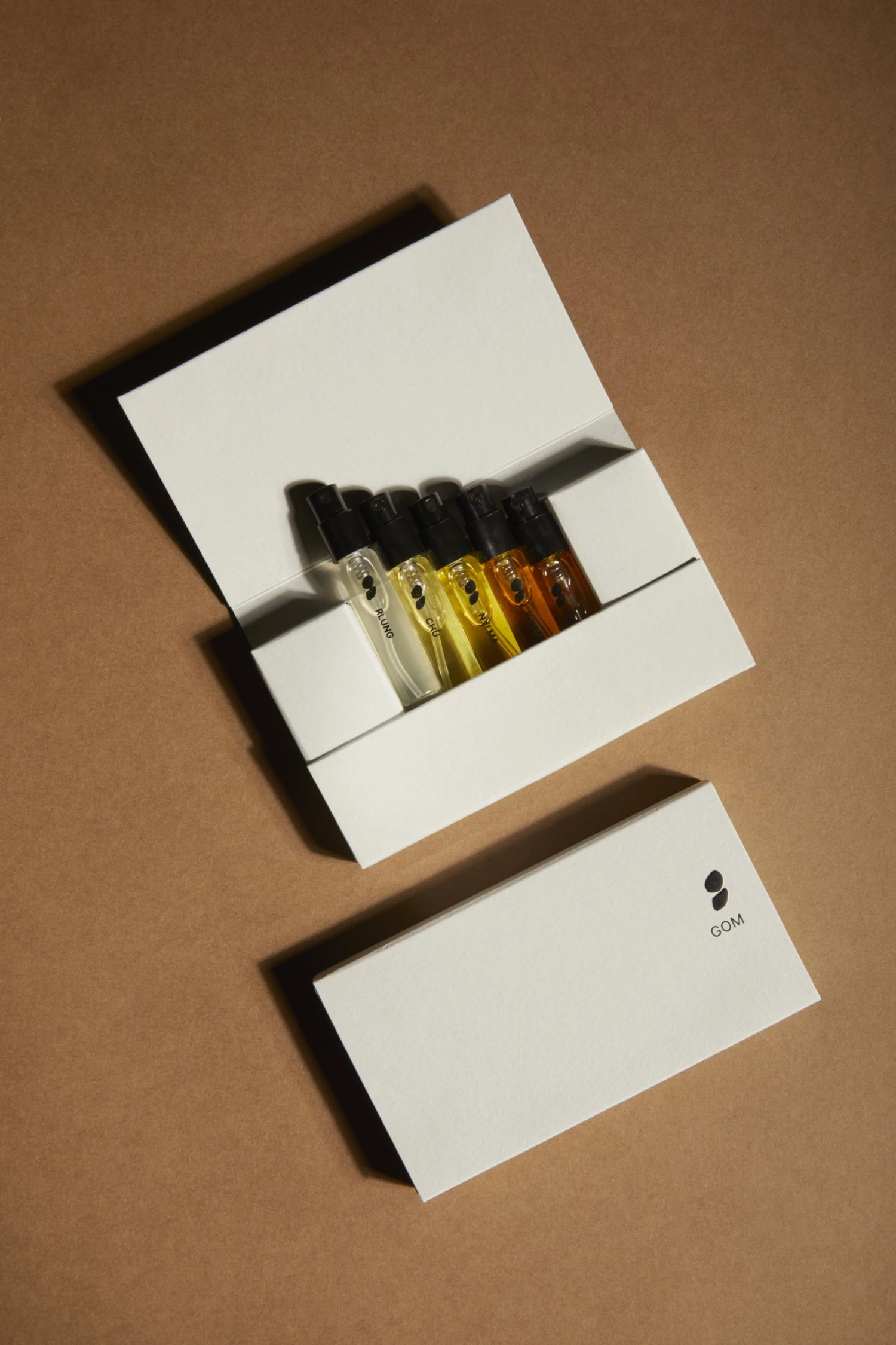 Výraznými ingrediencemi, s nimiž Gom Perfumes pracují, jsou například římský kmín, kadidlo, pačuli, pepř nebo citrusy. „Například římský kmín, který je obsažen v Rlung (vítr / životní síla), je té povahy, že ho buď milujete, nebo nenávidíte. Paradoxně je ale z těch pěti vůní asi nejoblíbenější,“ říká Saláková o kořeněné vůni, již doplňuje bergamot, yuzu, mandarinka, pepř, pačuli a kadidlo.