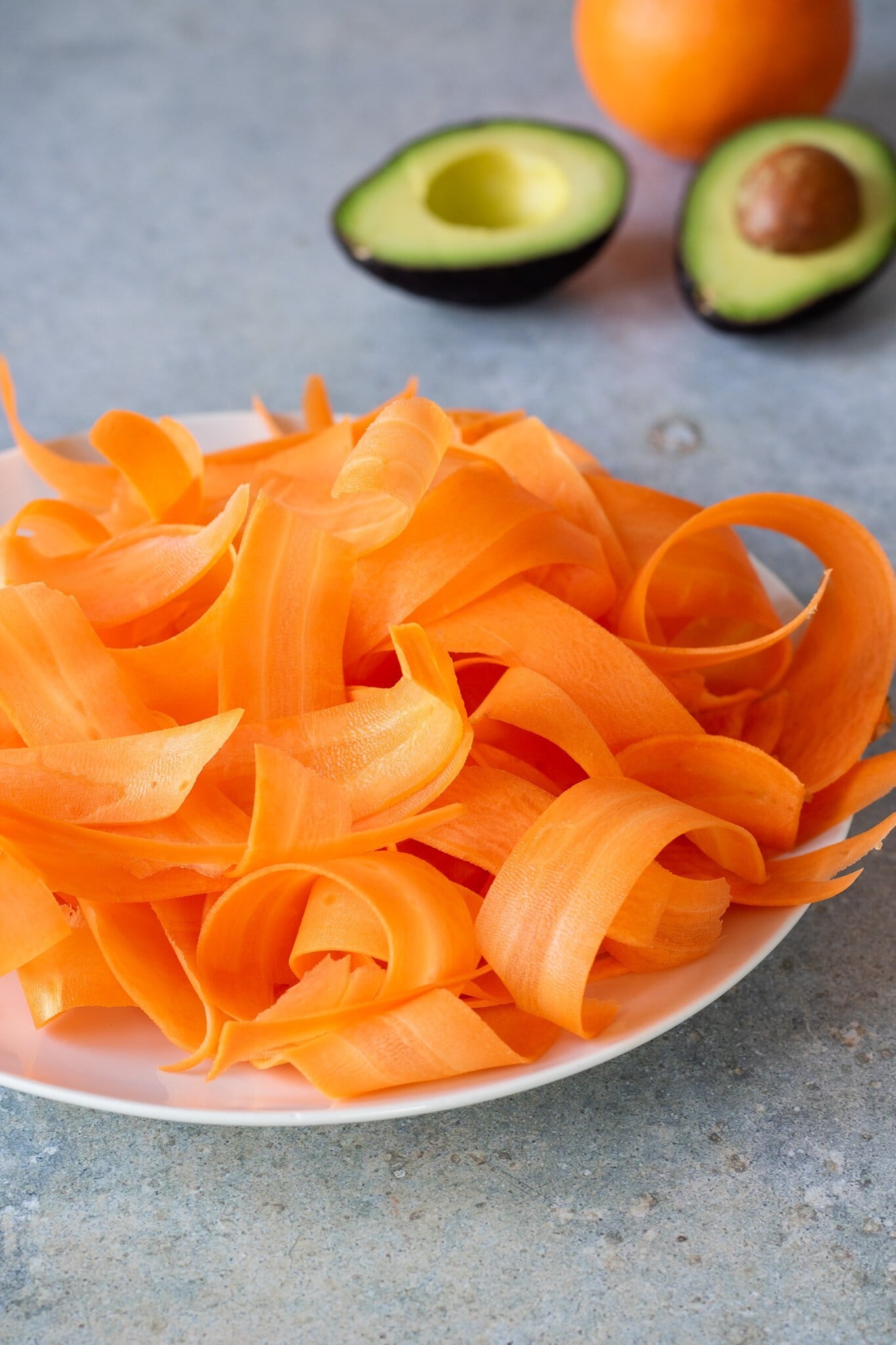 - Očištěnou mrkev pomocí škrabky naškrábejte na pruhy.