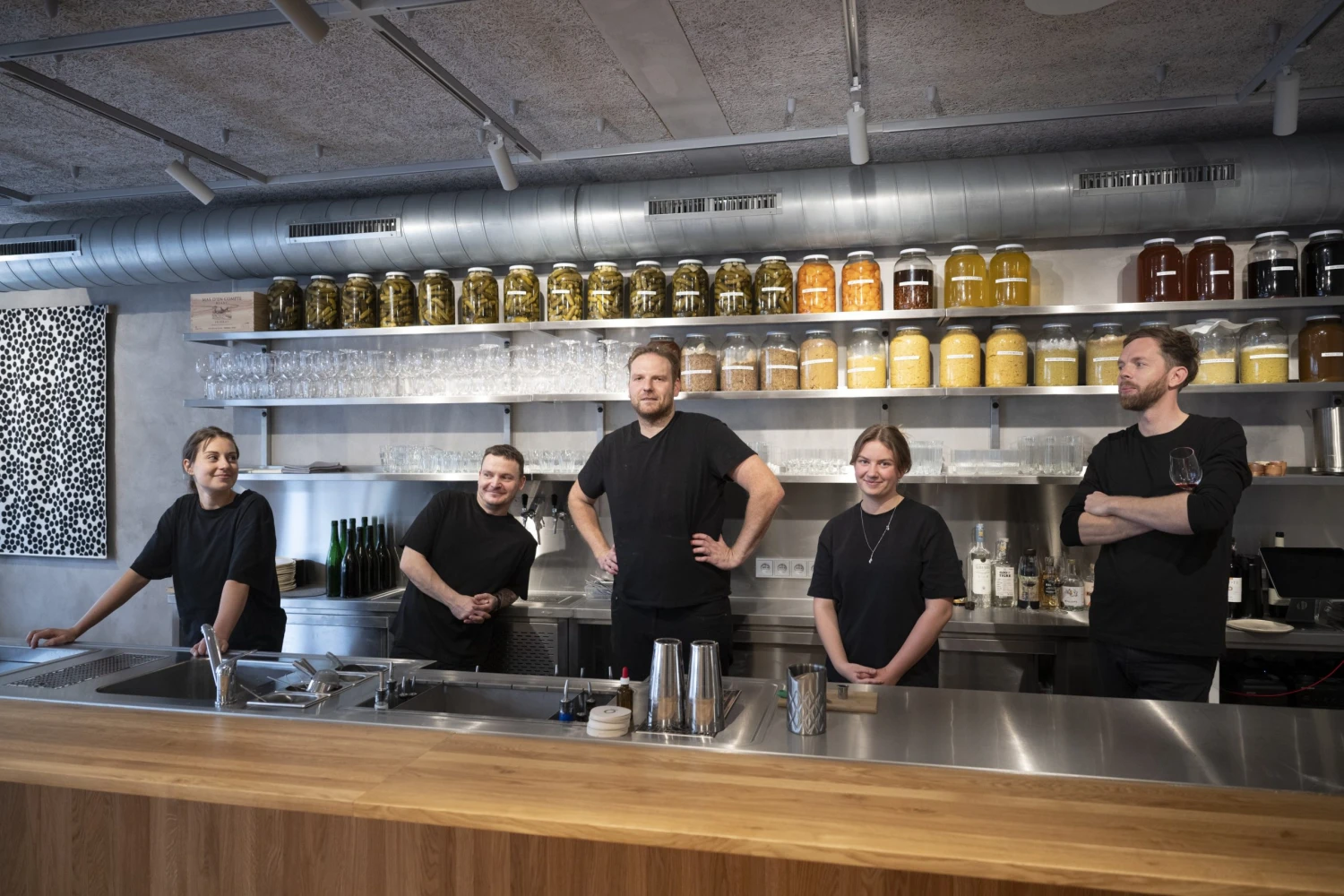 Otevřeno mají od středy do soboty, aby se malý tým nemusel střídat. Do kuchyně si Ondřej s Terezou přibrali ještě Švédku Alicii, kterou znají ze svého působení v Äng, takzvaně vepředu je to na Jaroslavovi Novotném a Karlu Hykešovi. Oba měli původně jen pomáhat s přípravou koktejlového, respektive vinného menu, ale zůstali.
