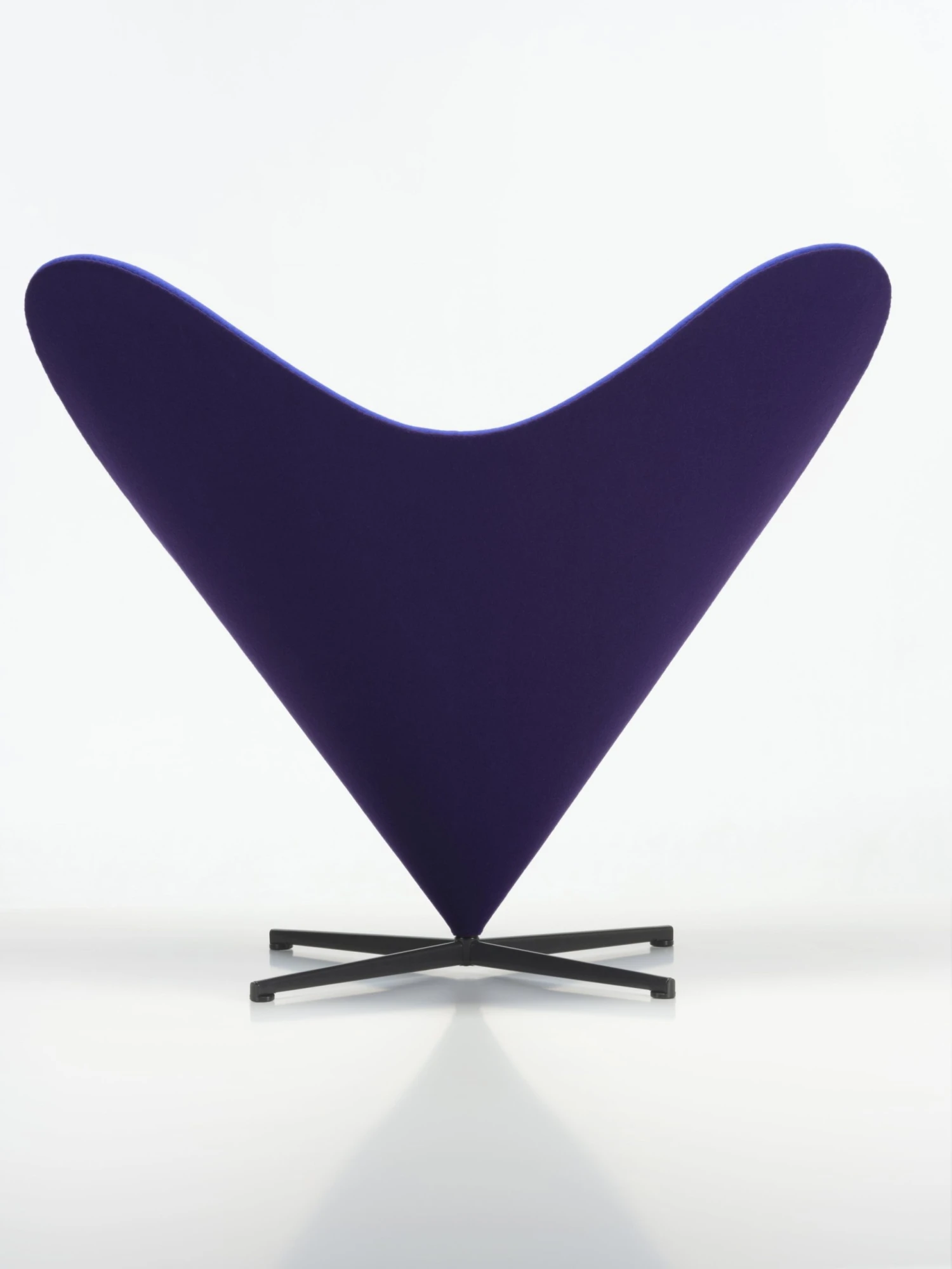 Ta židle se jmenuje Cone Chair a její název odkazuje k hlavní inspiraci jejího autora: obrácenému kuželu, který je v jeho návrhu posazen na subtilní čtyřramennou základnu z leštěné nerezové oceli. Právě takto vzniká charakteristická silueta křesla ve tvaru písmene V.