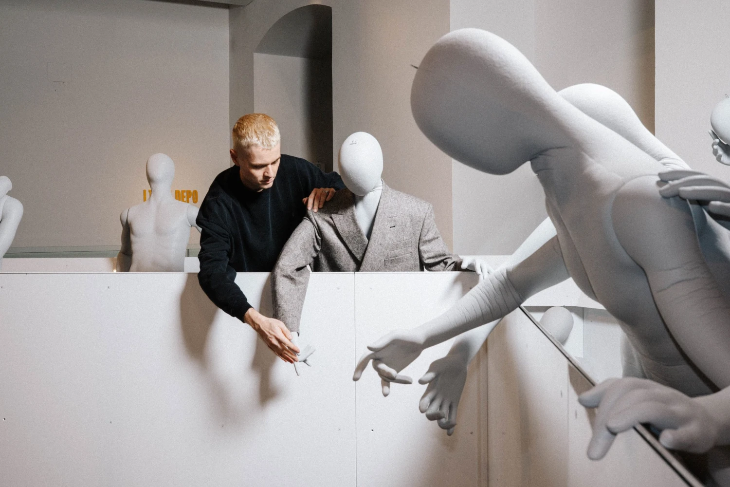 Návštěvník se navíc musí mezi figurínami doslova protlačit, takže se nevyhne dotekům, což boří hranici mezi objektem a publikem, přičemž módu Černý ukazuje jako živý organismus.