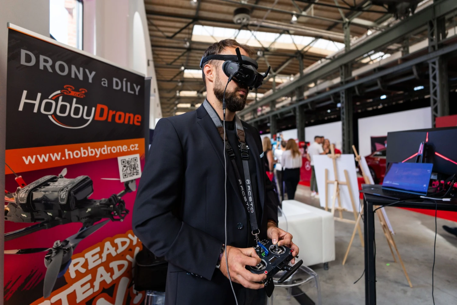 HobbyDrone předvedl drony, které bylo možné pilotovat díky vysílačce a FPV brýlím, pilot tak sledoval let, jako by v dronu sám seděl.