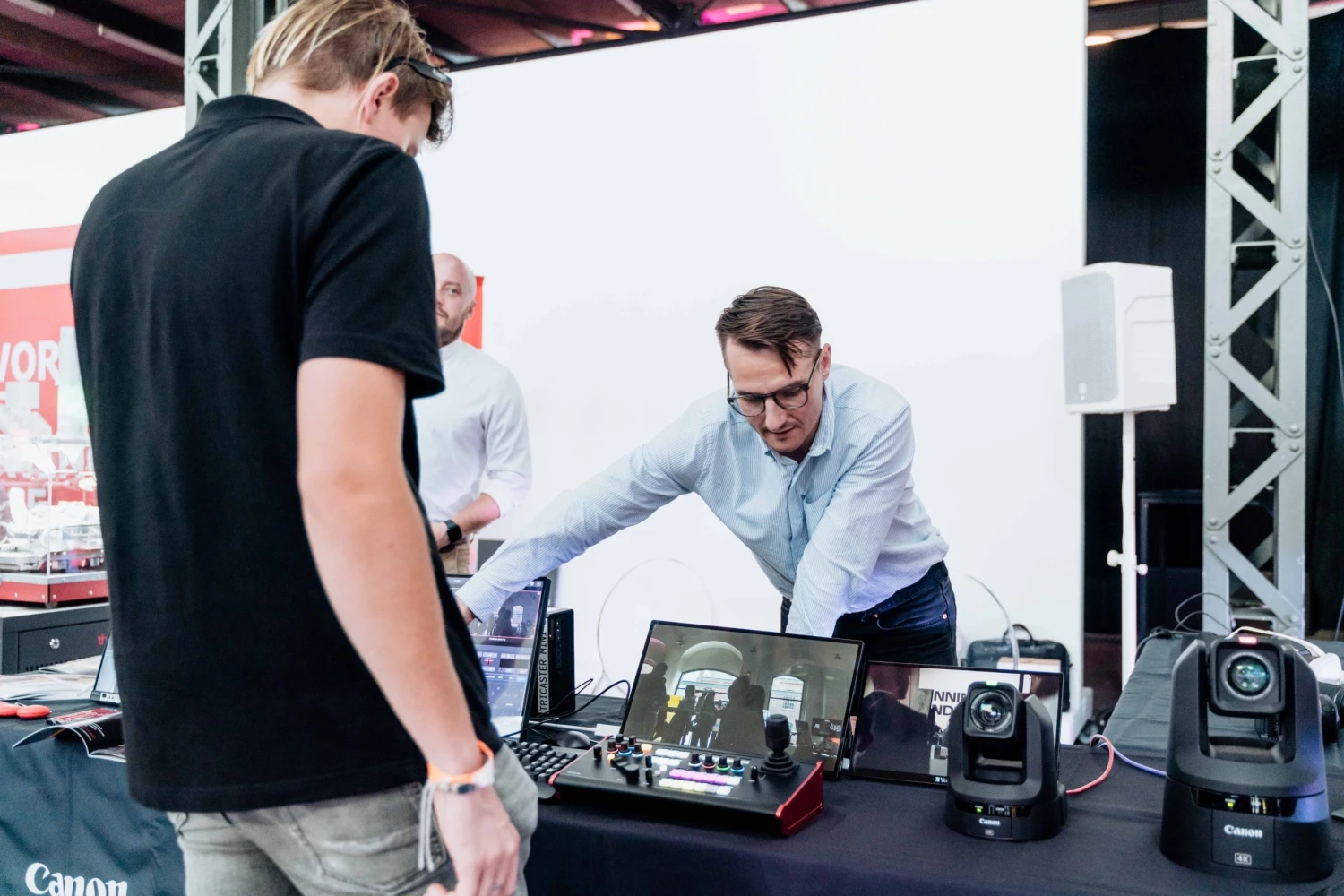 Stánek Canon lákal návštěvníky na živou ukázku toho, jak vypadá svět očima moderních bezpečnostních kamer.