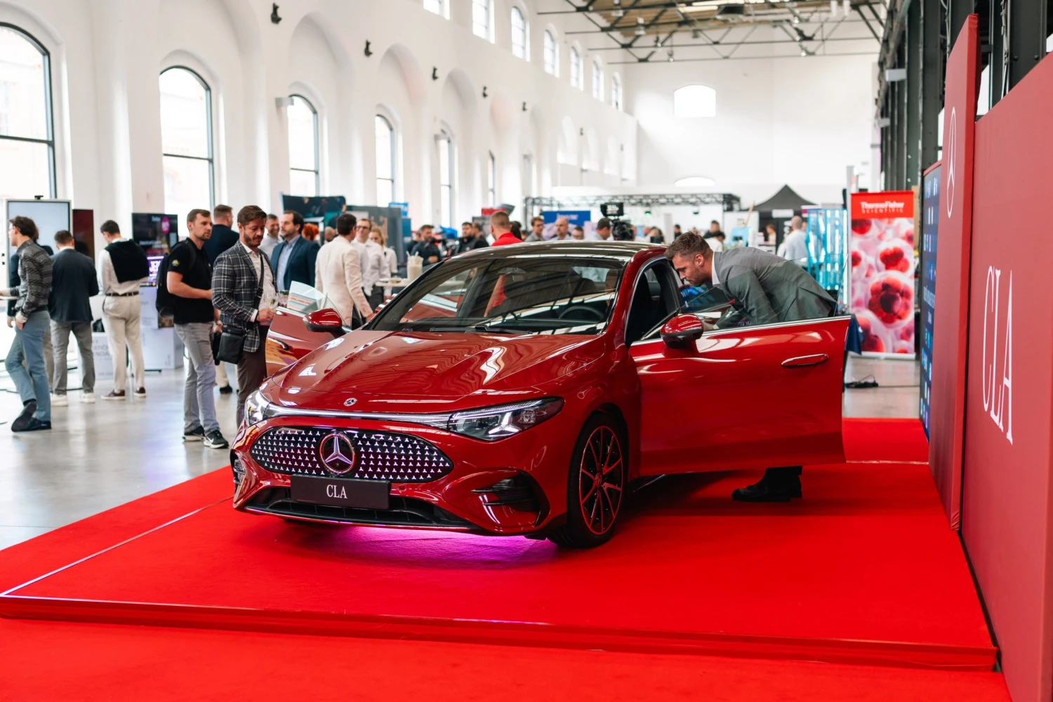 Hosté měli jedinečnou možnost zblízka si prohlédnout nové elektrické CLA od Mercedes-Benz, které zaujalo nejen elegantním designem, ale i impozantním dojezdem až 792 km a mnoha dalšími funkcemi.