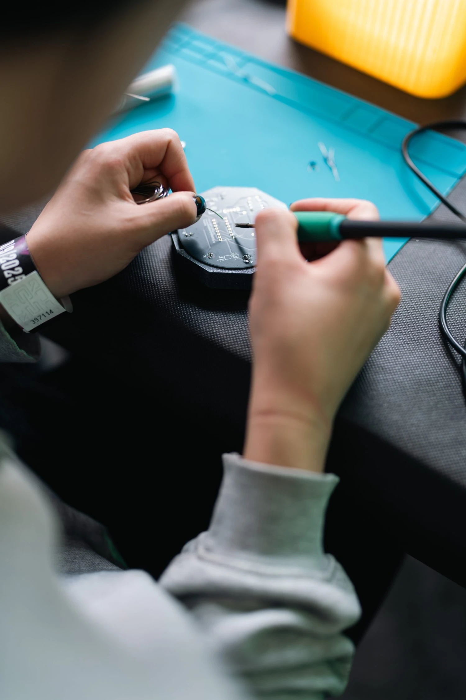 V otevřené digitální dílně FabLabu Brno mohli návštěvníci tvořit vlastní propisky, pájet plošné spoje a rozzářit běžící světla.
