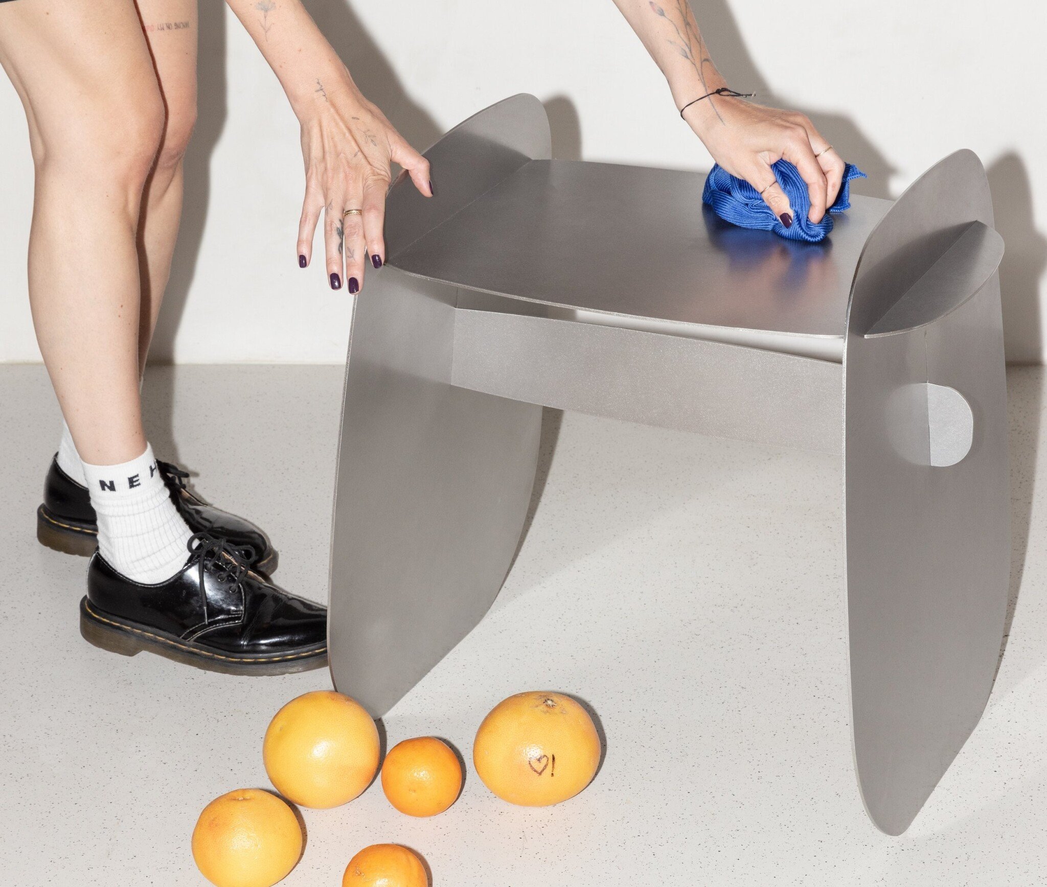 „Funguje to tak, že nasbíráme přírodní materiál, jako jsou nejrůznější větve, a obtiskneme je do hliníku,“ říká v UPM Wiktoria Bielicki, která projekt svého dua prezentovala i na akci Paris Design Week. „Nábytek tvoříme na zakázku, klient si může nasbírat svůj přírodní materiál, díky čemuž vznikne opravdu jedinečný kus,“ dodává.