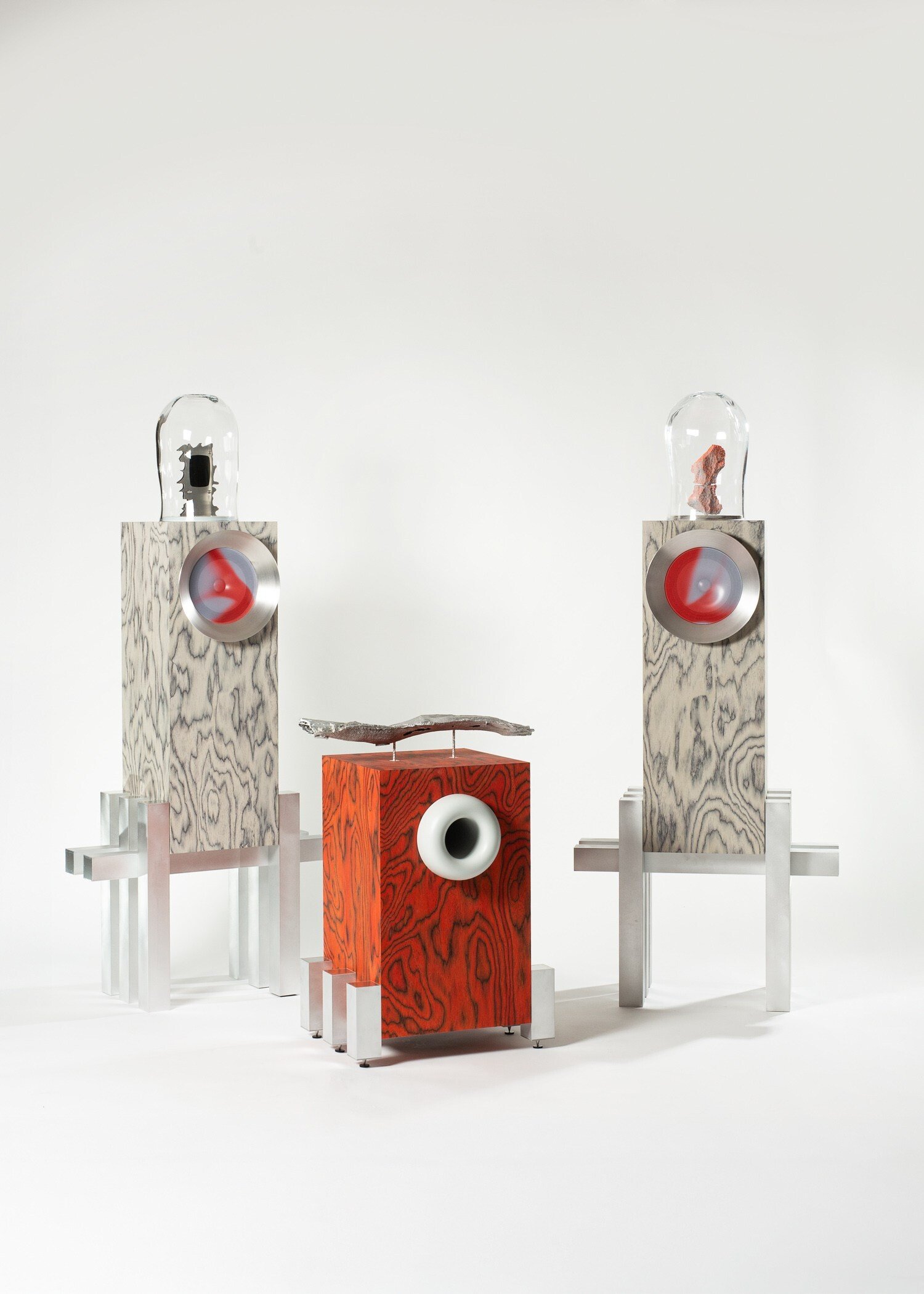 Vytvořeny jsou ze speciální italské dýhy a stojí na dřevěných podstavcích. I díky tomu vypadají jako malé sochy. Petr Vykoukal je konstruuje od začátku do konce sám, podepsaný je tedy nejen pod jejich atraktivní vizuální stránkou, ale také pod tou technickou, kdy ručně tvoří „střeva“ reproduktorů.