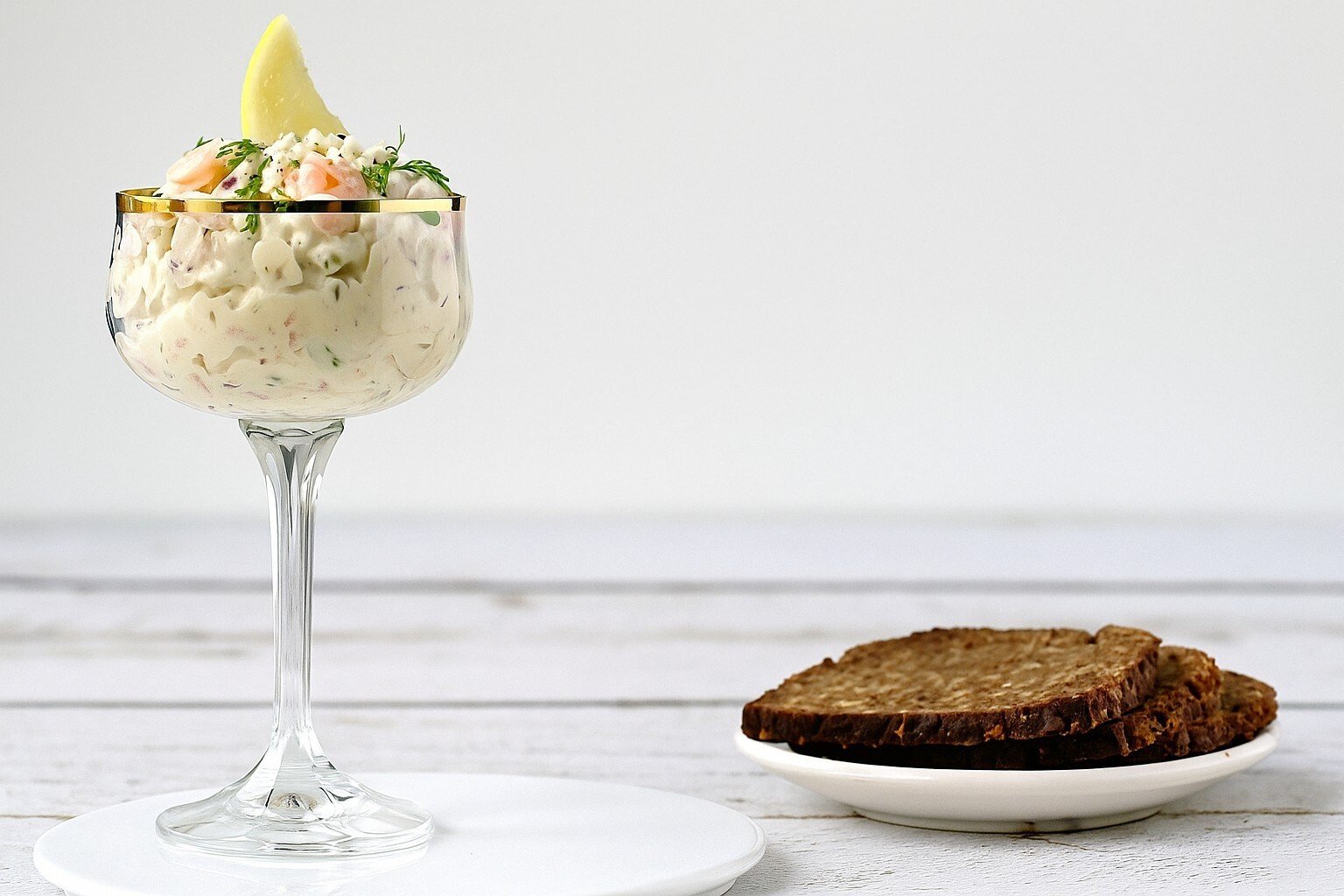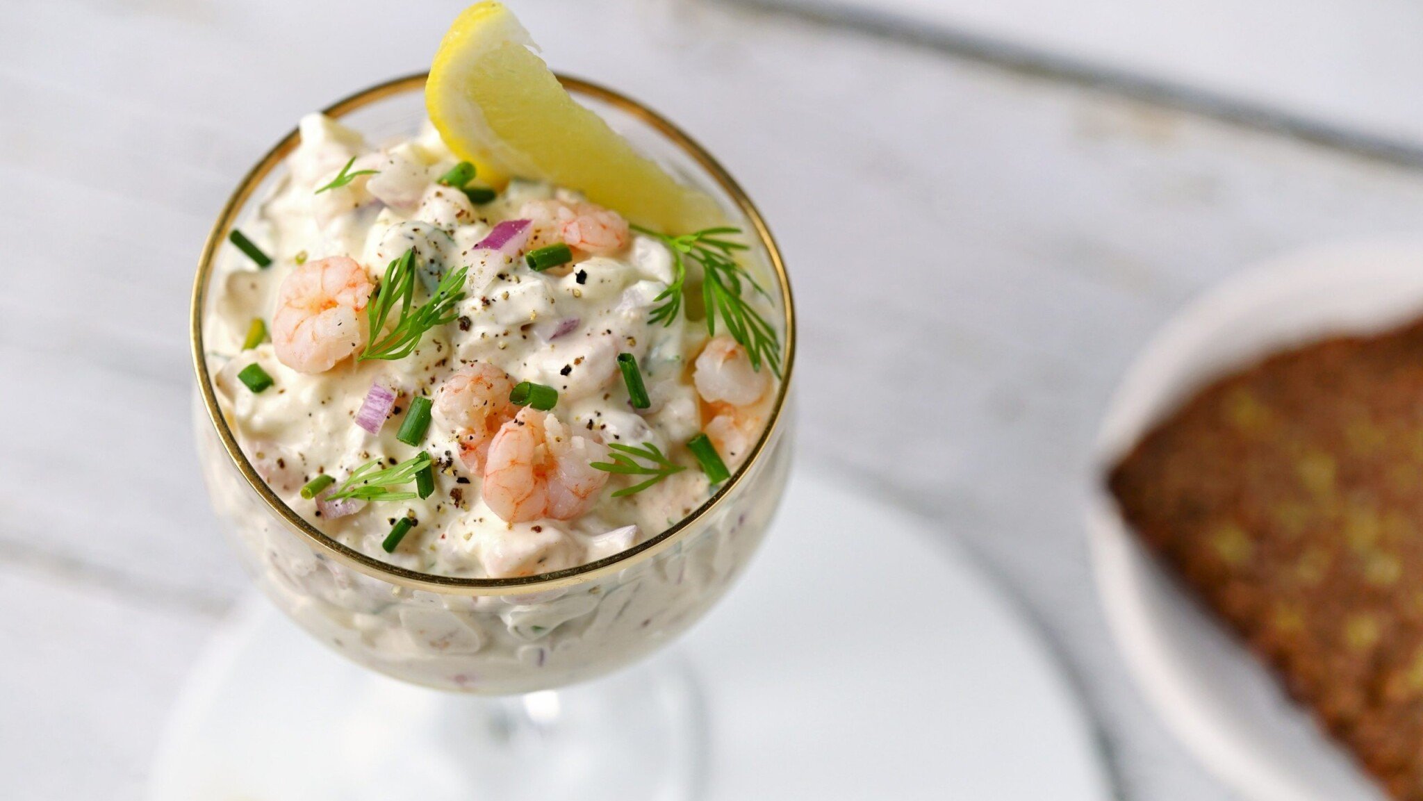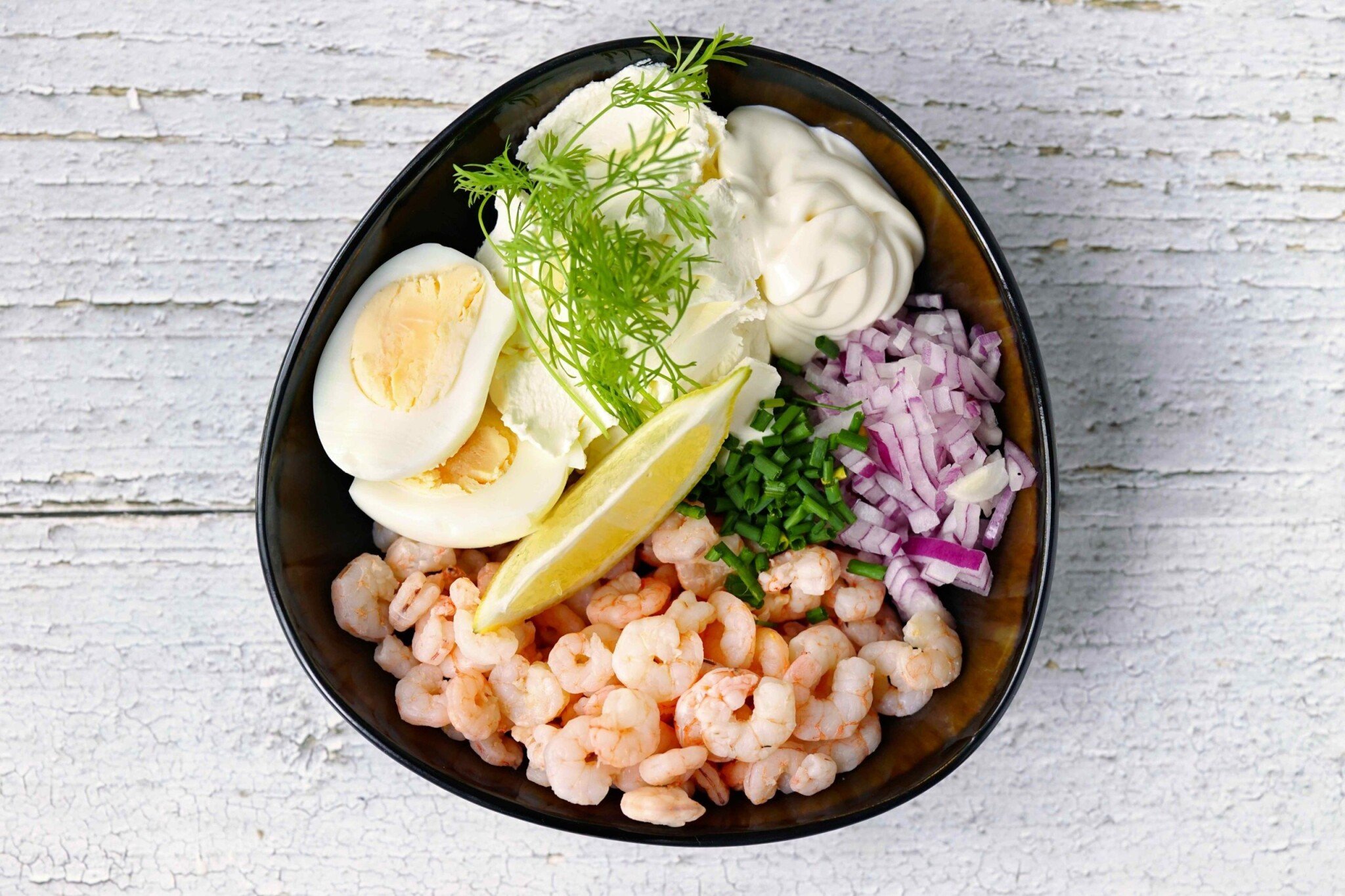Nejen masové kuličky jsou typické pro švédskou kuchyni. Tento tradiční majonézový salát z mini krevet nebo račích ocásků s koprem se podává jako předkrm nejčastěji s tmavým žitným chlebem. Kopr můžete nahradit strouhaným čerstvým křenem a pro sytější verzi přidejte nakrájené uvařené brambory.