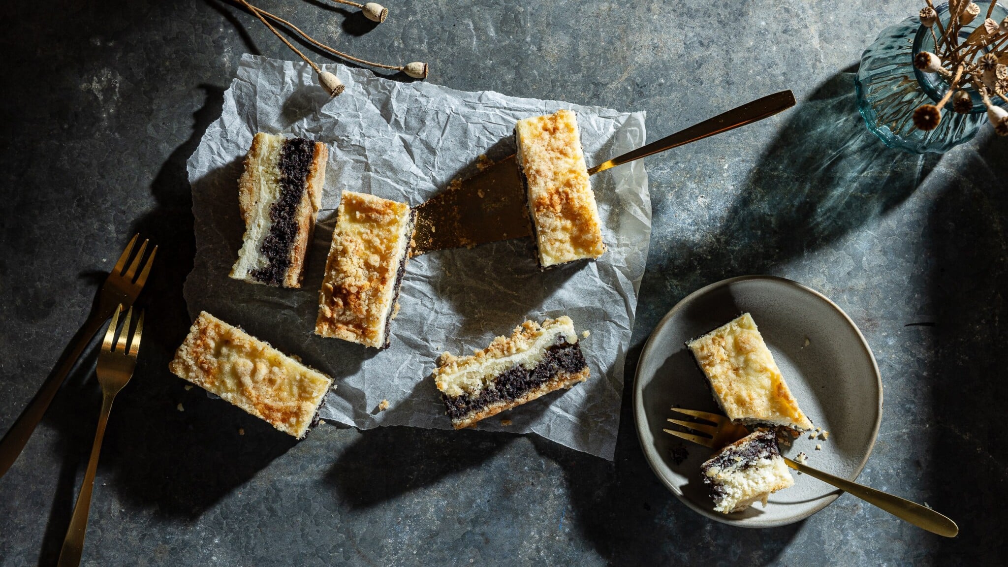 The post Tři vrstvy chuti. Vláčný strouhaný koláč s mákem, hruškami a tvarohem appeared first on Forbes.