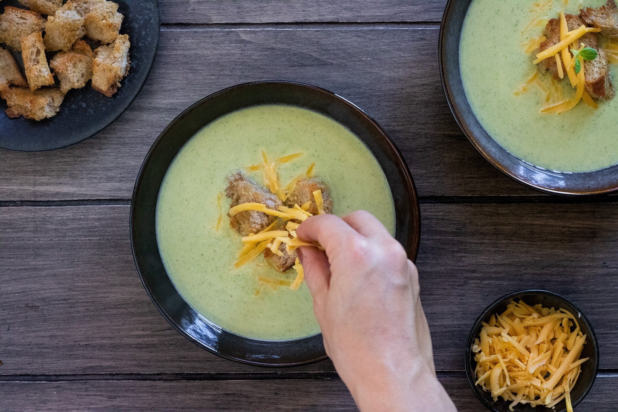 Ani příliš lehká, ani příliš hutná – cuketovo-brokolicová polévka s čedarem nabízí skvělý balanc mezi chutěmi i texturou. Výrazný sýr prohlubuje chuť do vyšších sfér gurmánského potěšení a krutony zase dodají příjemné křupnutí. Navíc tak i využijete starší chleba.