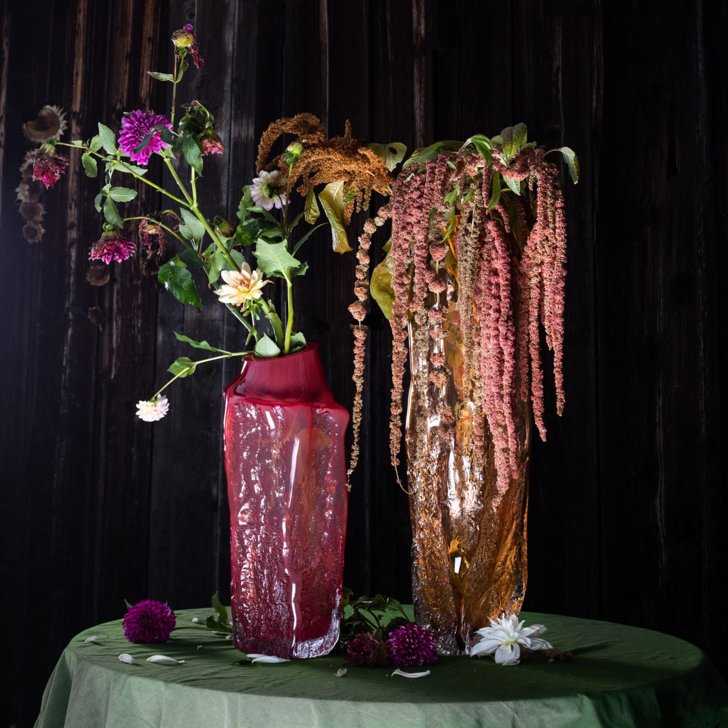 „Když na něčem pracujeme společně, je to většinou focení Davidových skleněných objektů. Někdy věci vznikají za pochodu. Díky spolupráci s Davidem jsem si uvědomila, že tohle mě baví a jde mi to. Pochybuji, že by mi nějaký klient byl schopný umožnit práci v takové absolutní svobodě. Mnohokrát jsme focení realizovali úplně nahodile. Třeba jsme se nudili během vánočních svátků a venku sněžilo, tak jsme sbalili do auta několik váz a jeli někam do lesa fotit,“ říká Tereza Valner.