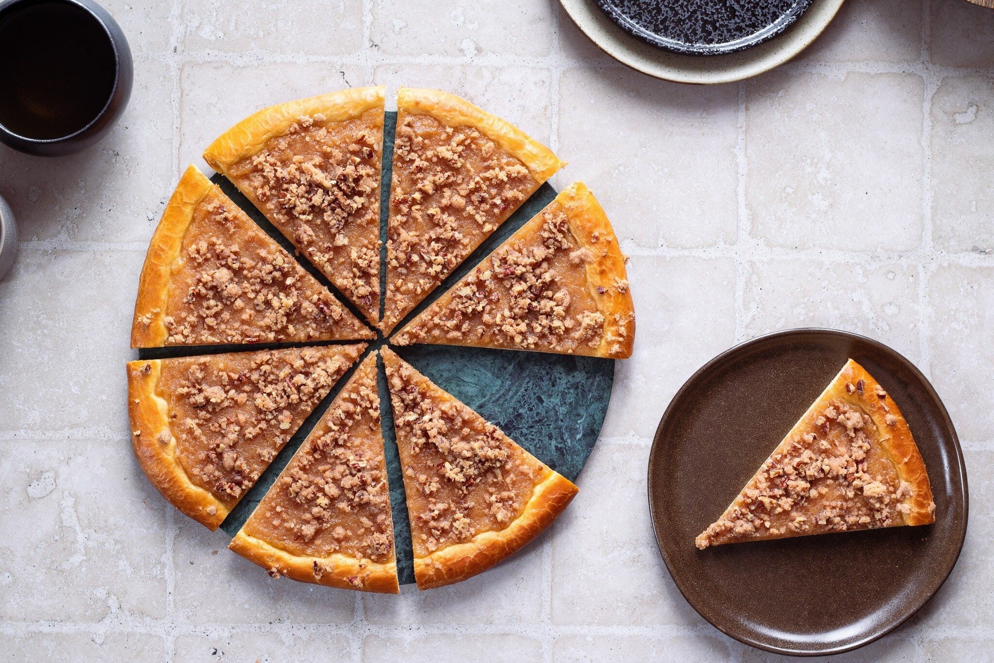 - Tuzemák smíchejte s rozpuštěným máslem. Ihned po upečení potřete směsí okraje koláče a pokapejte náplň.
