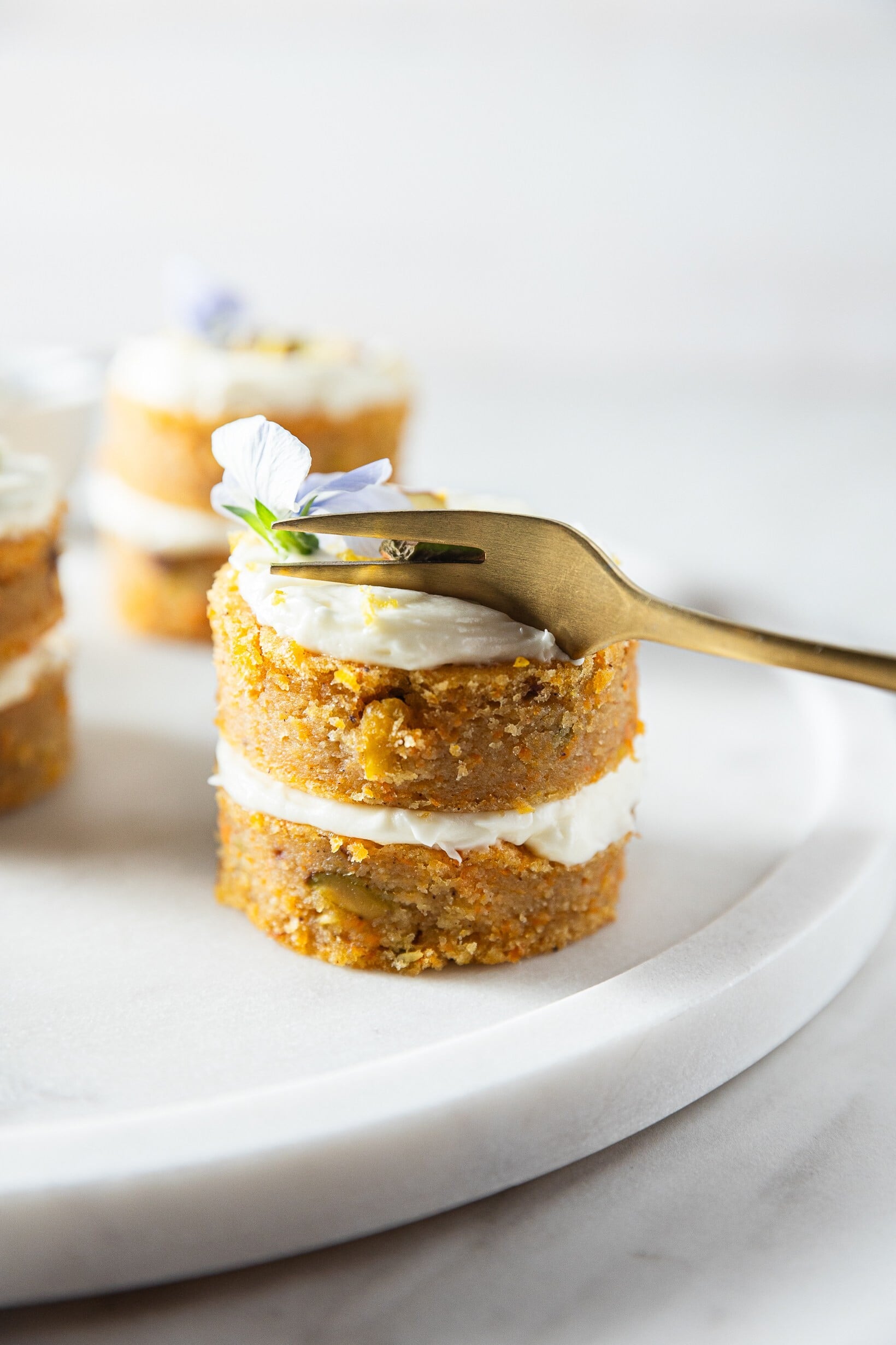 Vláčný mrkvový korpus se svěžím nadýchaným krémem se nádherně doplňují chutí i lákavým vzhledem. Roztomilé mrkvové minidortíky se hodí jako slavnostní pohoštění i jen tak pro radost.