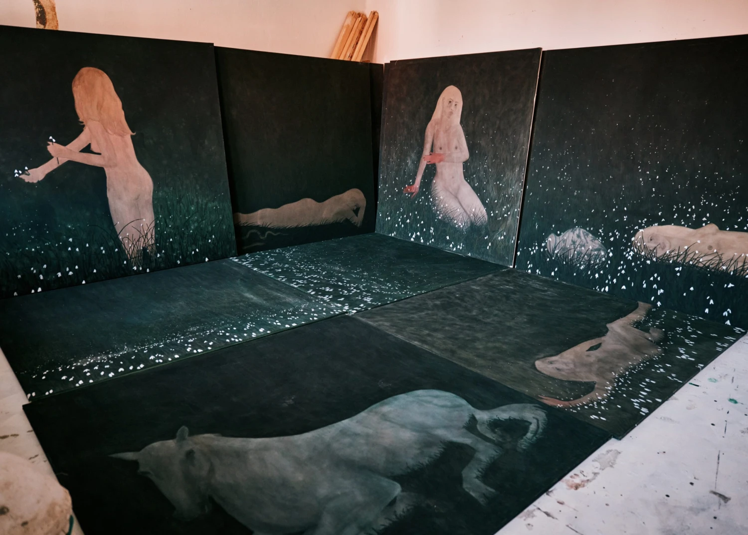 Zatímco kreativní vyhoření popisuje bez obalu slovy, další z nosných témat své tvorby ukrývá do velkoformátových pláten. Jestliže v začátcích své kariéry to byly symbolů plné příběhy sexuálních pracovnic z jihovýchodní Asie, dnes jde v malbách víc k sobě.