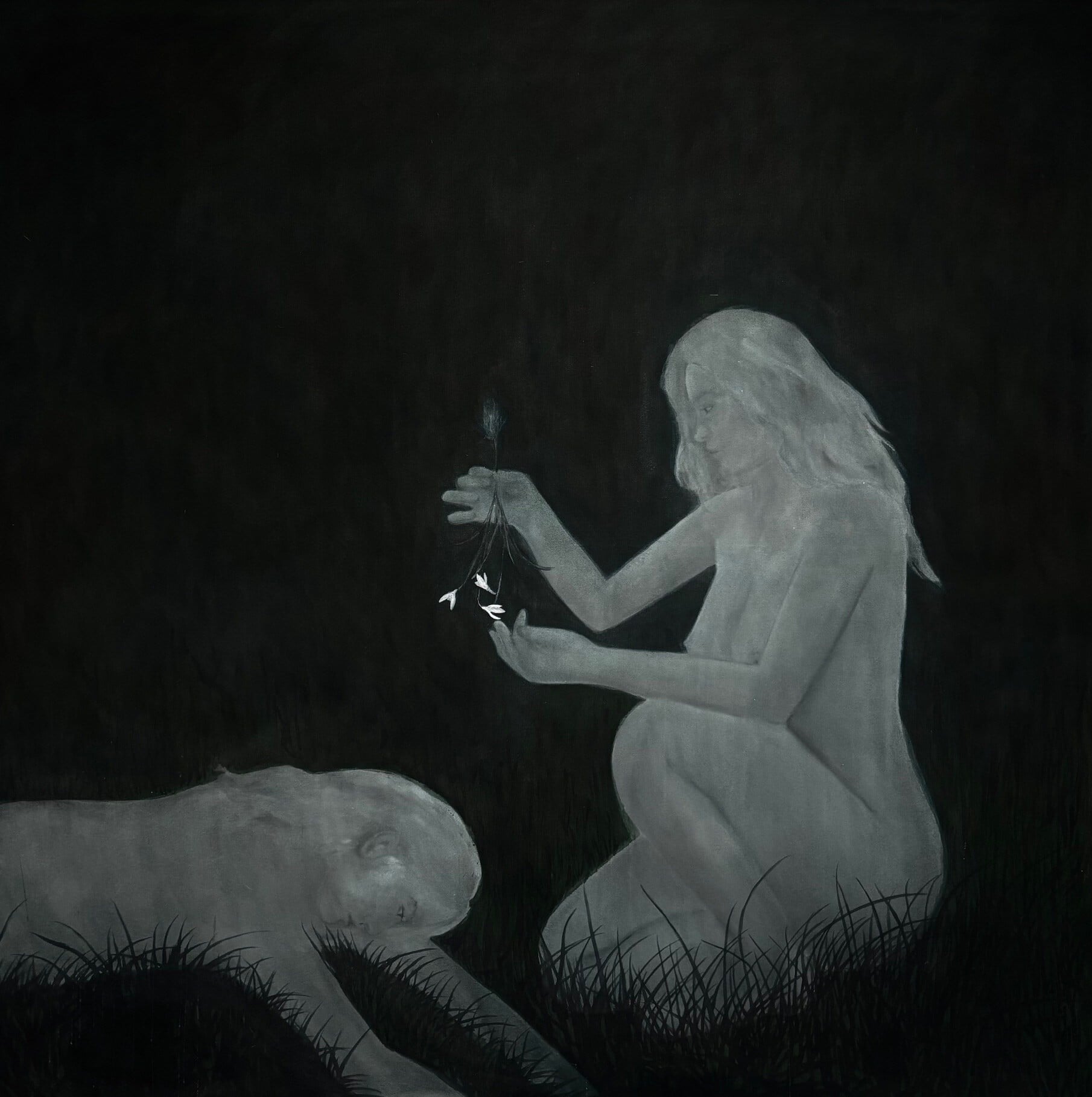 Odpovídá tomu i symbolika, s níž v novém cyklu pracovala: nahota tu funguje jako ukázka zranitelnosti, příroda jako vědomý způsob zklidnění, sněženky ukryté v trávě zase jako naděje na nový, svěží start.