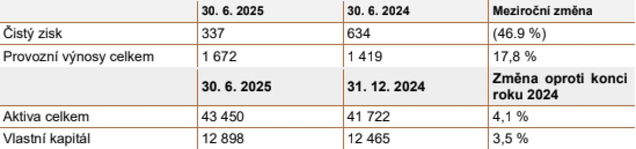 Meziroční pokles čistého zisku za první pololetí roku 2025 do značné míry odráží loňský prodej telekomunikačních aktiv PPF mimo ČR při vzniku partnerství s globální technologickou skupinou Emirates Telecommunications Group Company. Ke změně čistého zisku přispěl také prodej aktiv ve spotřebitelském financování v Indii, vypořádaný v letošním roce.