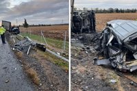 Těžká nehoda u Znojma: Kamioňák přehlédl auto a slisoval ho i s řidičem