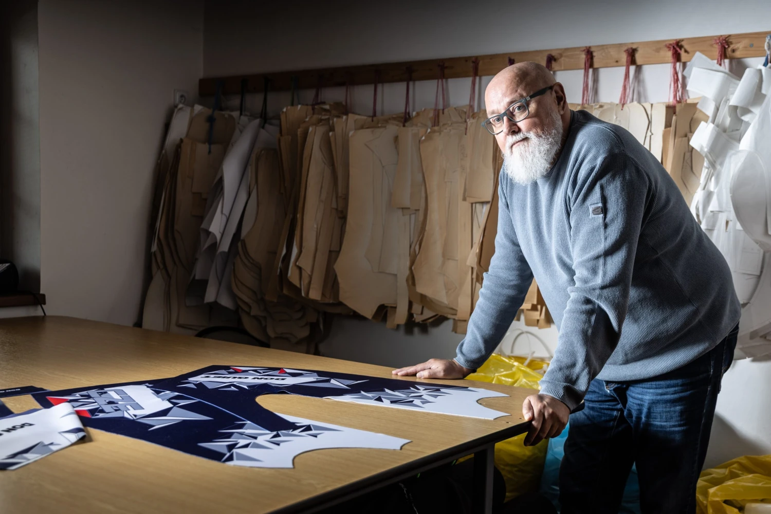 „Máme tady všechny velikosti a asi šedesát různých designů. Dříve jsem měl na každou sezonu připravených čtyři až pět nových. Teď už ale skoro devadesát procent mých oddílů má svůj design, který pořád opakují, takže už to není tak potřeba,“ vypráví Ivo.