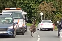 To krčisko, ty nožiska! Pštros si v Ostravě vykračoval v silnici