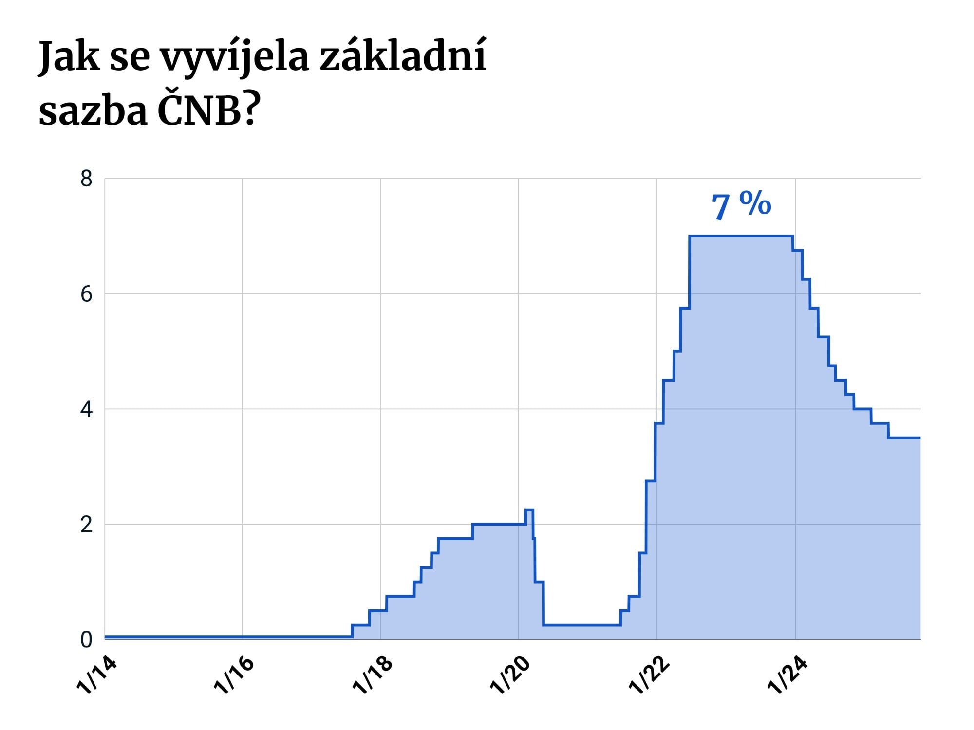 Po vypuknutí pandemie v roce 2020 ČNB v rozmezí tří zasedání bankovní rady snížila základní úrokovou sazbu z 2,25 procenta na 0,25 procenta. Zároveň rozvolnila pravidla poskytování hypoték, již nebylo nutné se s celkovým dluhem „vejít“ do osminásobku ročního příjmu a s měsíční splátkou do 45 procent měsíčního příjmu.