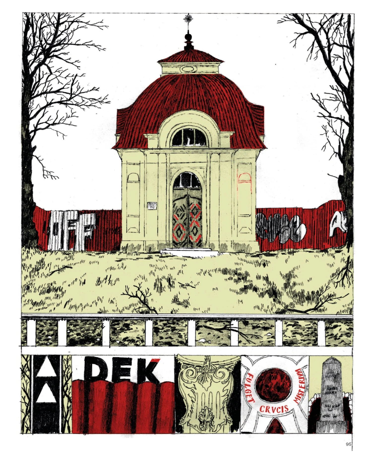 Jádro jeho knihy tvoří semirealistické kresby vycházející z fotografií, periferní městské krajiny zachycené na výšku. I kvůli tomu jejich autor mnohdy mírně ohýbal perspektivu, aby se do výřezu vešlo vše podstatné. Detaily z jednotlivých míst pak dokreslují ilustrace připomínající komiksové stripy.